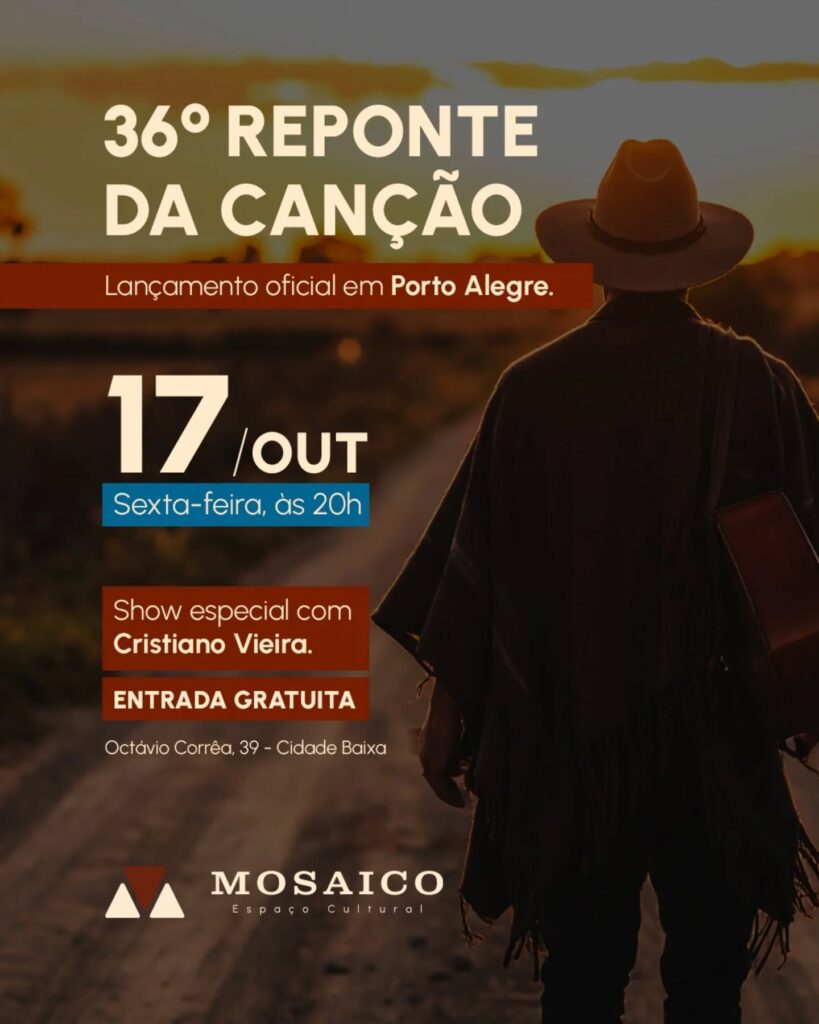 Folklore Argentino | Valor por pessoa: R$ 40,00 Em 07 de dezembro (domingo), às 19h30, Milagros Arancet dará um show de música e cultura argentina no Mosaico. De Paso de los Libres, Argentina, a cantora e compositora vem trilhando um caminho artístico e mantendo viva a tradição folclórica do país. Em 2025, lançou “Nunca dejes